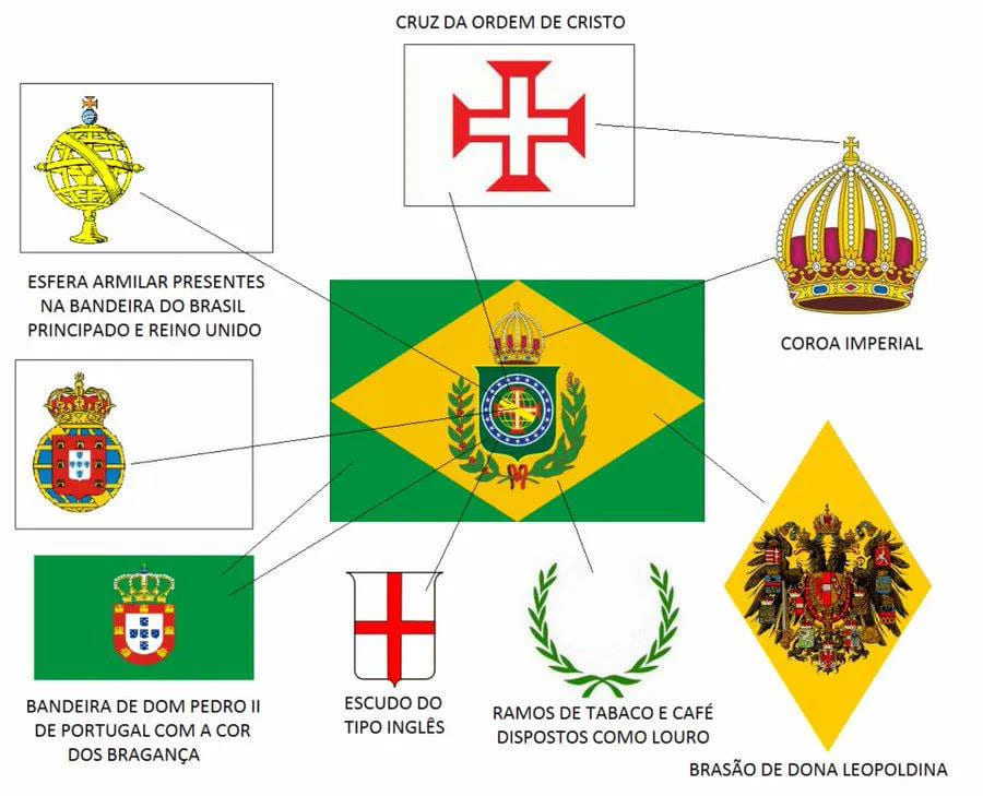 Com a chegada da Família Real em 1808, o Brasil passou a usar símbolos específicos do Reino Unido de Portugal, Brasil e Algarves. Em 1822, com a independência, Dom Pedro I adotou a primeira bandeira genuinamente brasileira. Ela serviu de base estética para o modelo republicano que viria 67 anos depois.