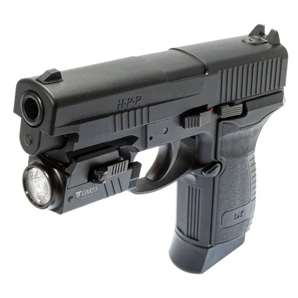 Muitos modelos são integrados ao trilho frontal da arma e acionados por botões remotos, posicionados próximos à empunhadura. Isso garante acionamento rápido sem alterar a empunhadura ou a postura de tiro, algo essencial em situações de alto estresse.