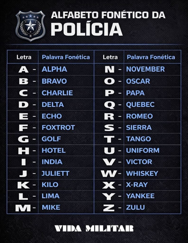 Para quem pretende seguir carreira policial, dominar o alfabeto fonético é um passo básico e obrigatório. Para quem já atua, ele é parte inseparável da rotina operacional. Simples na forma, poderoso na prática, esse sistema segue sendo um dos pilares da comunicação policial moderna.