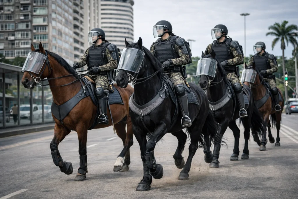 - Polícia Federal (PF): Embora menos comum no dia a dia urbano, a PF pode utilizar o apoio de montarias em regiões de fronteira ou áreas de difícil acesso geográfico para fiscalização.